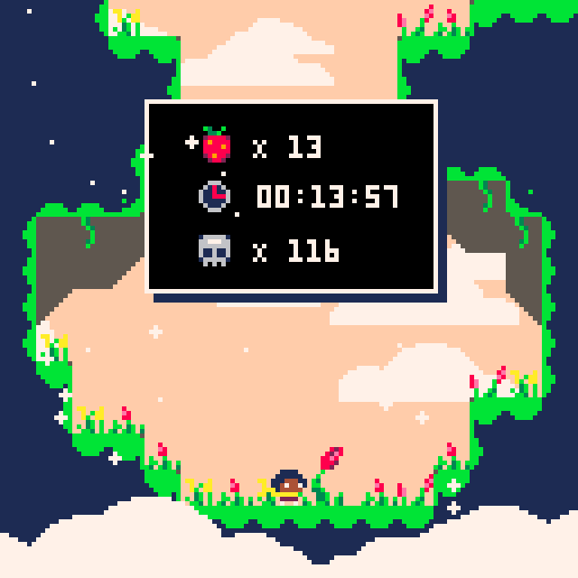 I improved my score (more strawberries, better time and fewer deaths). I can definitely say that the longer you play, the better the game gets. Too bad it will never become a long game with a story and campaign like Celeste 1.